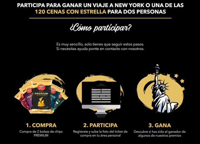 Vive momentos premium con Frit Ravich. Participa en la promoción y podrás disfrutar de experiencias gastronómicas de lujo o de un viaje inolvidable a Nueva York. ¡Date prisa, la promoción termina el 31 de agosto para las compras y hasta el 15 de septiembre para introducir las participaciones!